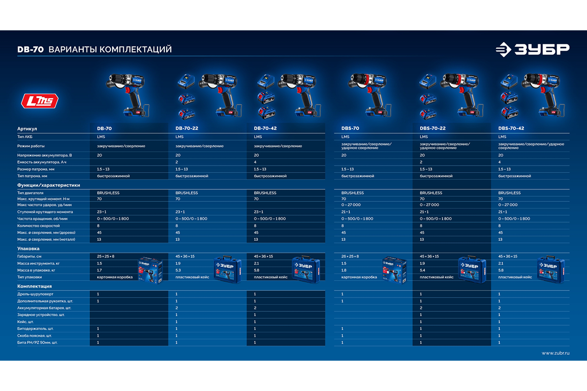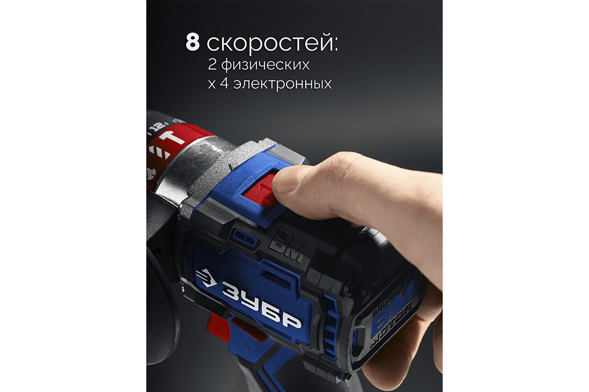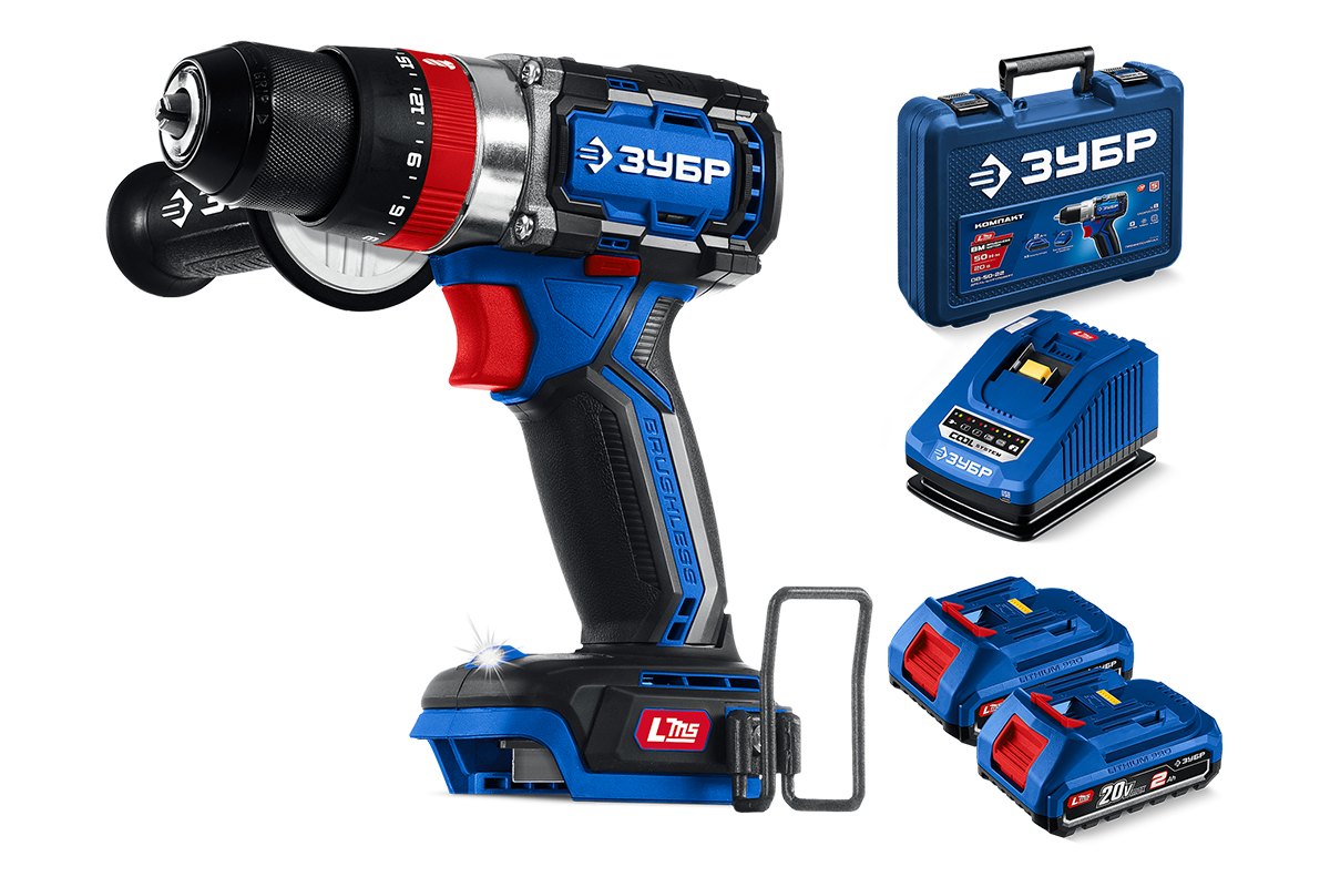 Высокотехнологичная модель в новой линейке аккумуляторного инструмента ЗУБР серии LMS Дрель-шуруповерт профессионального уровня с передовым BRUSHLESS двигателем.