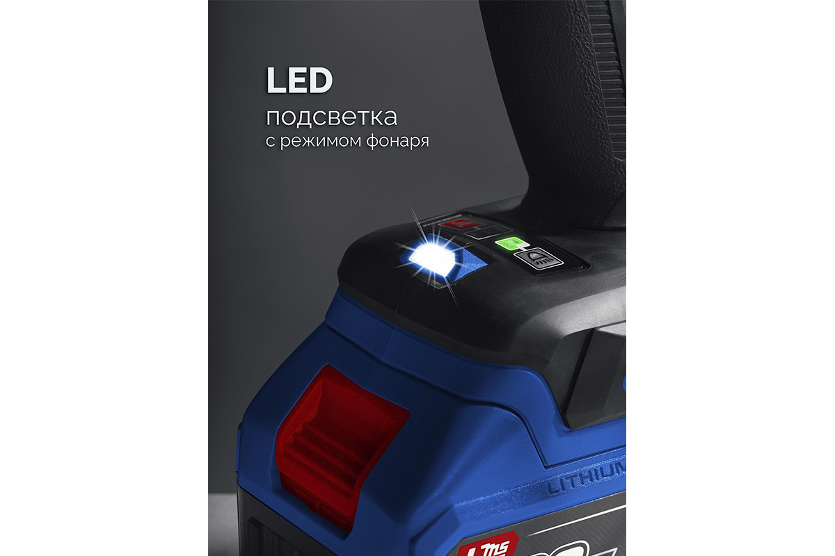- Трехрежимная (выключено, включение с инструментом, фонарь) подсветка рабочего места не перекрывается патроном