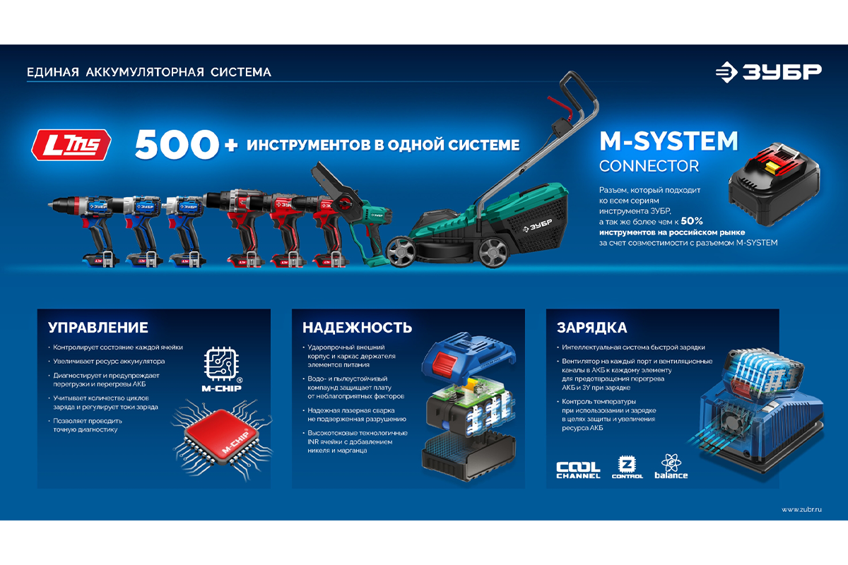 - Единая аккумуляторная система LMS для 500+ инструментов