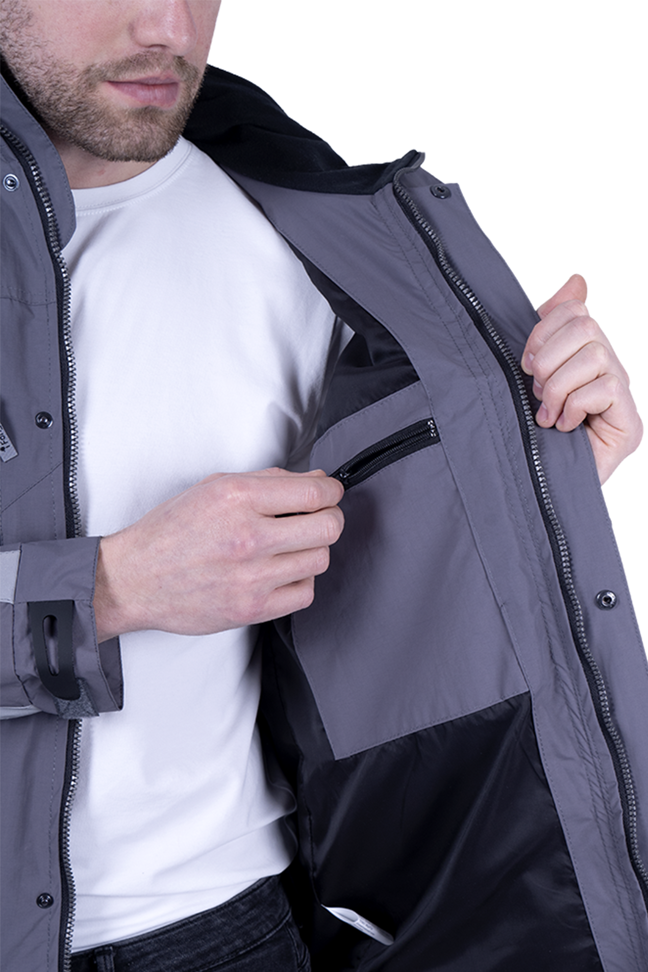 • воротник-стойка с карманом для капюшона, капюшон несъёмный