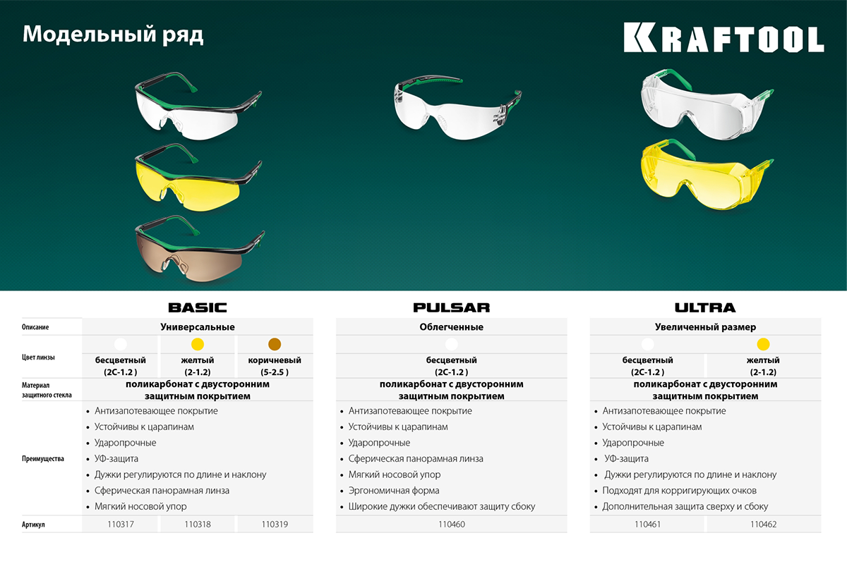- Широкие двухкомпонентные дужки для дополнительной защиты сбоку