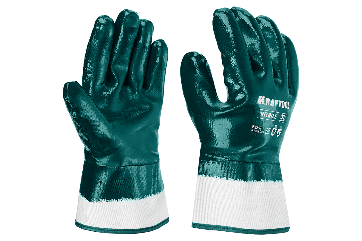 Перчатки рабочие KRAFTOOL предназначены для защиты от общих производственных загрязнений и скольжения. Перчатки незаменимы при строительстве, сельскохозяйственных работах, на химических производствах. Они защищают руки от механических, химических и термических повреждений, грязи и брызг металла. Нитриловое покрытие этих перчаток обладает масло-бензостойкостью, что позволяет их использовать при работе с нефтепродуктами. Натуральный материал текстильной основы создает удобство в работе и предотвращает раздражение. Превосходный захват как сухих так и замасленных деталей. Защитная манжета в виде краги.