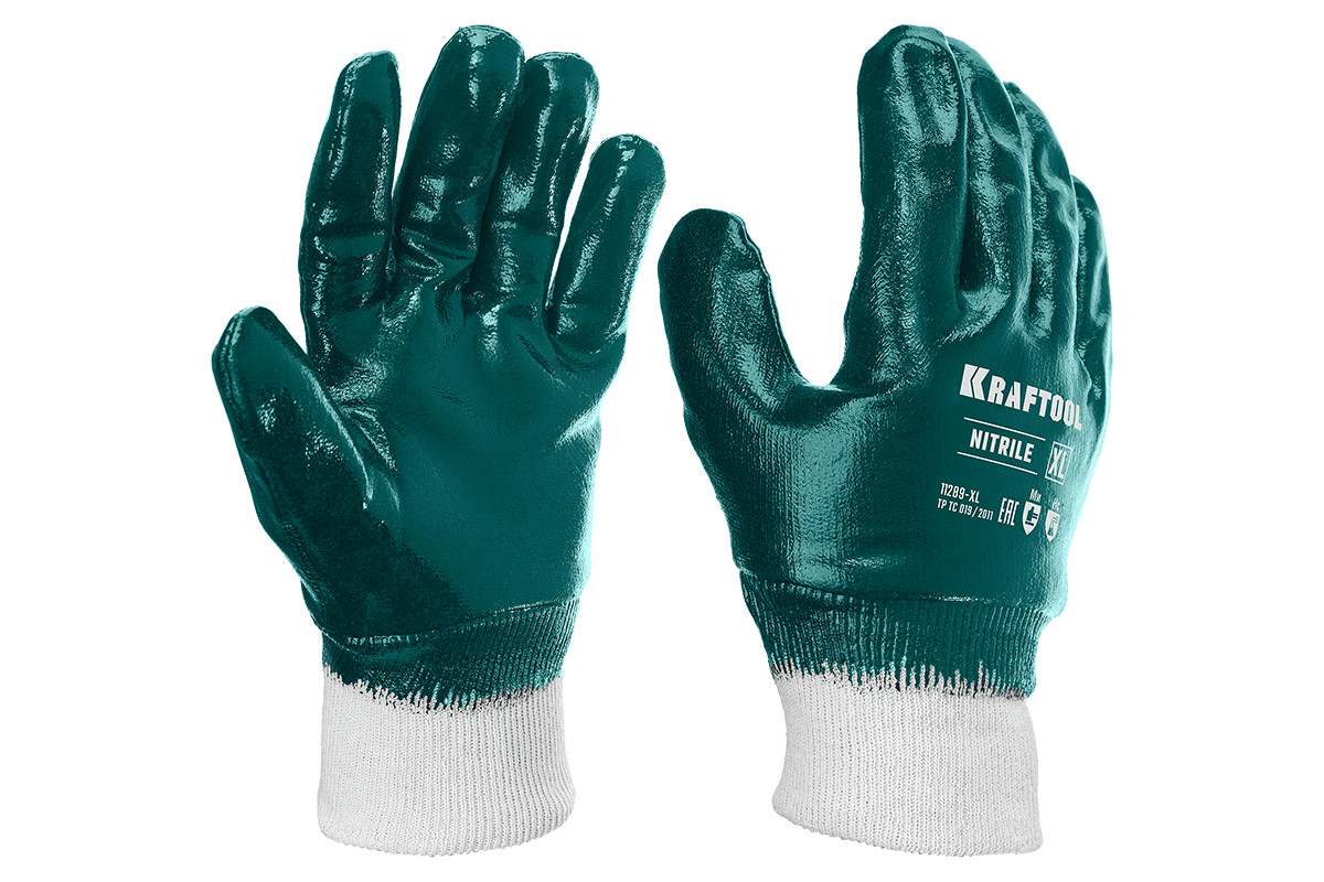 Перчатки рабочие с манжетой KRAFTOOL предназначены для защиты от общих производственных загрязнений и скольжения. Перчатки незаменимы при строительстве, сельскохозяйственных работах, на химических производствах. Они защищают руки от механических, химических и термических повреждений, грязи и брызг металла. Нитриловое покрытие этих перчаток обладает масло-бензостойкостью, что позволяет их использовать при работе с нефтепродуктами. Натуральный материал текстильной основы создает удобство в работе и предотвращает раздражение. Превосходный захват как сухих так и замасленных деталей. Эластичная манжета для лучшей фиксации на руке.